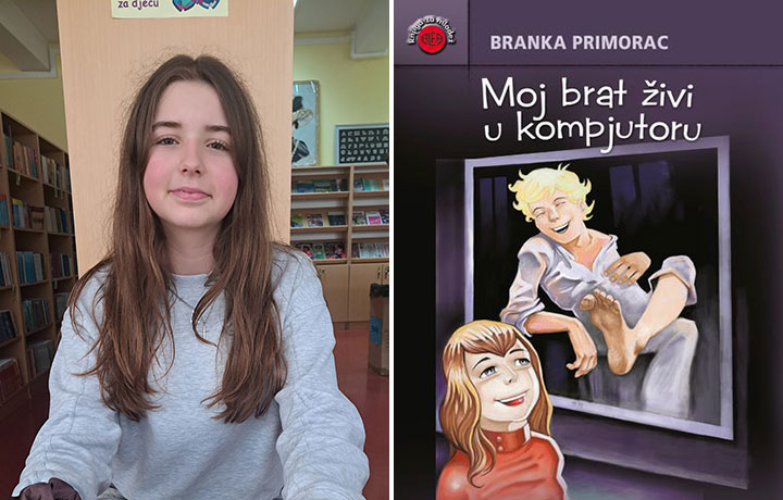 Prvi put ove godine sudjelujem u projektu Čitanjem do zvijezda. Jedna od knjiga koju sam morala pročitati bio je roman Branke Primorac Moj brat živi u kompjuteru. To je vrlo zabavna i zanimljiva, znanstvenofantastična, ali i pustolovna knjiga. Glavni je lik djevojčica Katarina koja živi s roditeljima i sa svoje četiri sestre. Radnja romana smještena je u daleku 2071. godinu. Zanimljivo je kako je spisateljica opisala to buduće vrijeme. Tehnologija je na puno višem stupnju nego danas, ljudi ne komuniciraju previše, ne postoje susreti s prijateljima, ljudi žive puno duže. Katarina i svaka od njezinih sestara ima svog robota koji im pomaže u obavljanju svakodnevnih poslova. Postoje različita prijevozna sredstva koja mogu letjeti, a velike udaljenosti svladavaju u kratkome vremenu. Posebno me dotaknula činjenica da iako imaju puno rođaka, nikad ih nisu sreli uživo. Njihovi susreti odvijaju se isključivo putem ekrana.